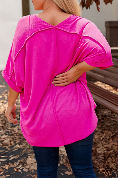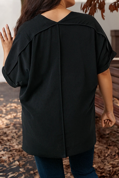 Plus Size Seamed Back High Low Hem V Neck Cuffed Sleeve Tee