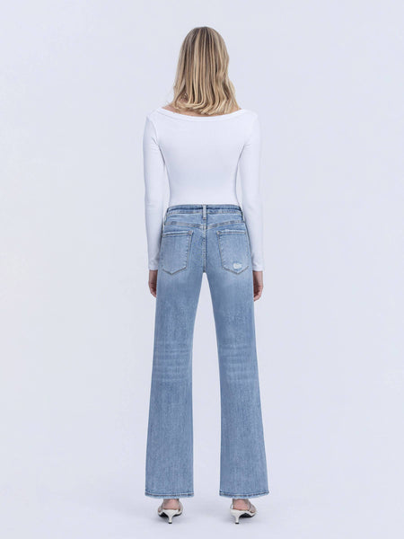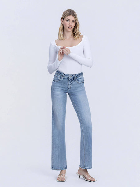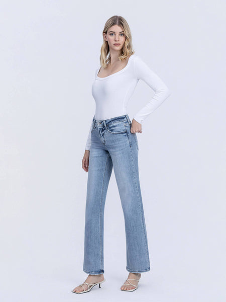 Achieve a sleek silhouette with these tummy control mid-rise slim wide jeans. Crafted from comfortable stretch denim, they feature inner shaping panels that smooth and flatter your midsection while maintaining all-day comfort. The mid-rise waist sits perfectly at your natural waistline, while the slim wide leg offers a modern, versatile fit. Five functional pockets and a distressed back right pocket add style and practicality. The light wash finish keeps these full-length jeans fresh and easy to pair with any outfit. Perfect for everyday wear with confidence and comfort built in.