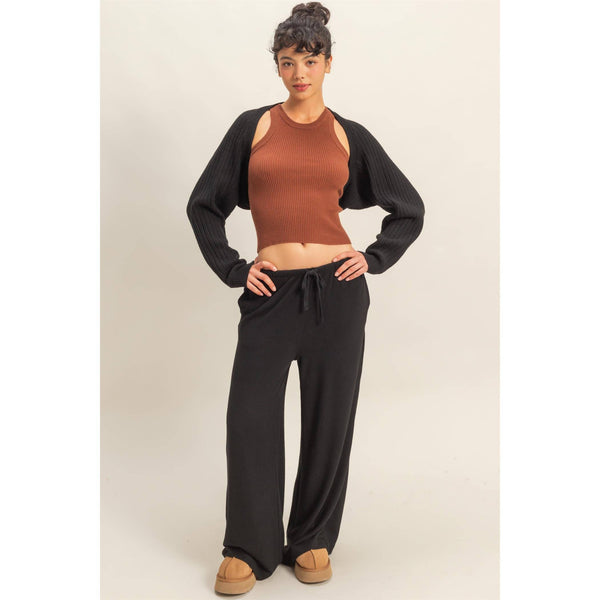 Laid Back Brushed Fabric Relaxed Wide Leg Pants