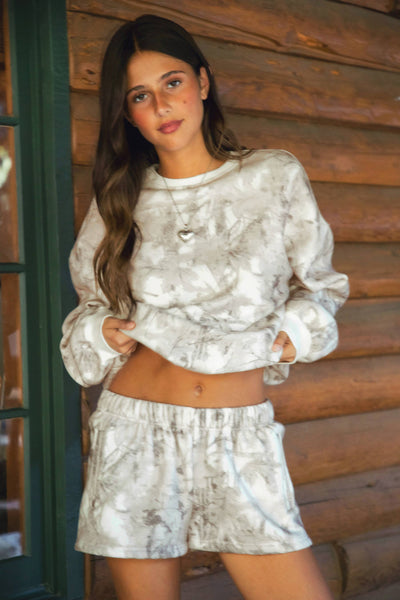 Tic Toc Light Woodland Camo Fleece Mid Rise Shorts