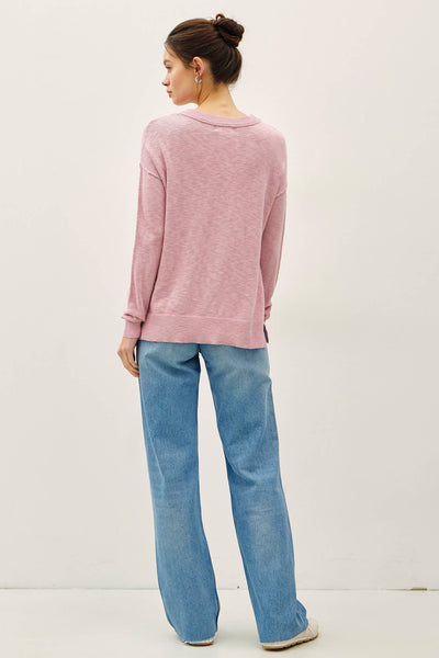 The Rose Sweater features an oversized fit and is crafted from slub yarn, providing both comfort and style. Its ribbed hem and side split enhance mobility, while the chest pocket adds functionality. Ideal for transitional seasons like spring and fall, this sweater combines casual elegance with practicality.