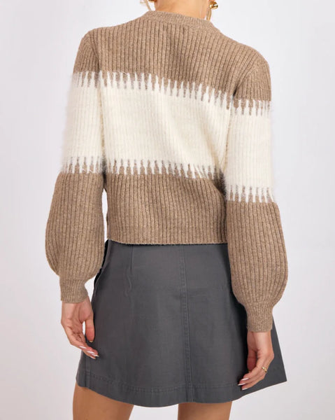 Crafted from a thoughtfully blended yarn composition, this crew neck sweater showcases a sophisticated tan and ivory colorway that transitions seamlessly between seasons. The mixed yarn construction provides textural depth while maintaining a refined aesthetic, making it an essential layering piece for any wardrobe. The classic crew silhouette offers versatile styling options, whether paired with tailored trousers or casual denim. Quality construction ensures durability and lasting comfort through repeated wear.